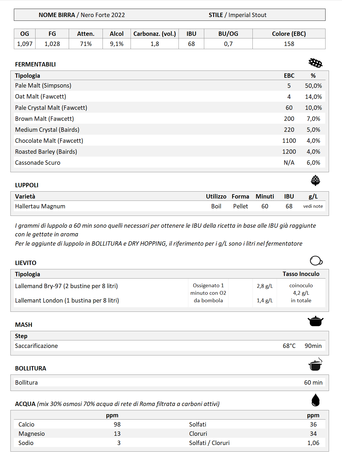 Sono contento, il risultato è decisamente migliore rispetto alla Nero Forte dello scorso anno. Non è esattamente come la avrei voluta – per quello serviranno ancora prove nei prossimi anni – ma è una birra più che piacevole. Per uno stile che non è facile da produrre e che ogni anno mette a dura prova il mio impianto e la mia pazienza, non c’è male. Gli sforzi e la lunga attesa sono stati in buona parte ripagati.