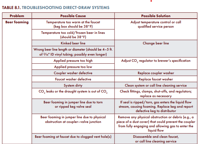 In questo libretto, nella sezione dedicata al troubleshooting, è presente una tabella molto utile che riporta tutte le possibili cause dei principali inconvenienti legati alla spillatura, tra cui l’eccesso di schiuma.