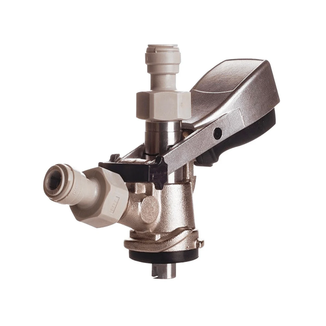 Il problema si può presentare con connettori a scivolo o a baionetta, dove le due vie che gestiscono birra e anidride carbonica sono posizionate molto vicine all’interno dello stesso connettore. In questi casi, una guarnizione che non tiene può far passare anidride carbonica dalla via del gas a quella della birra, generando schiuma.